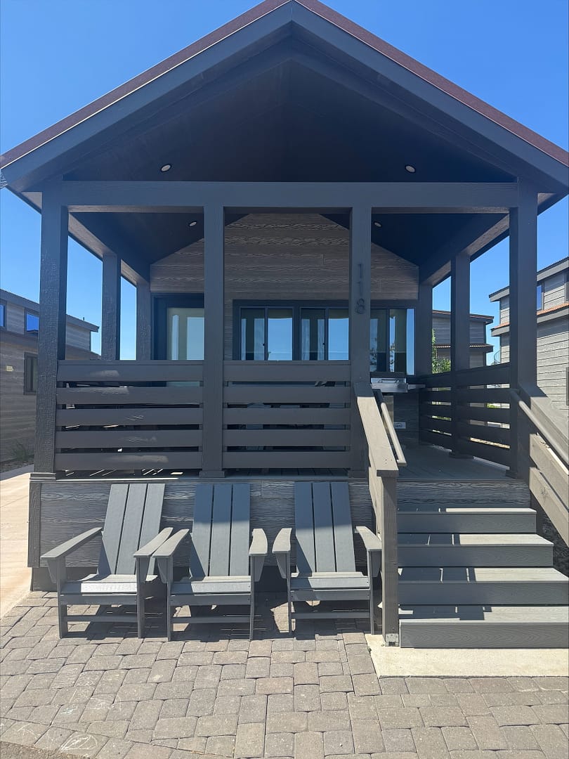 Designed for connection and relaxation, the open-concept layout features a full kitchen, comfortable sleeping spaces, and a light-filled living room that opens to your very own front porch. Whether you’re hosting guests or sneaking away for a quiet weekend, the Juniper offers the best of both worlds.